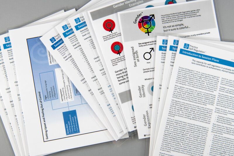 Theses laminated session plans are designed to guide facilitation of the Practice Self-Regulation workbook.